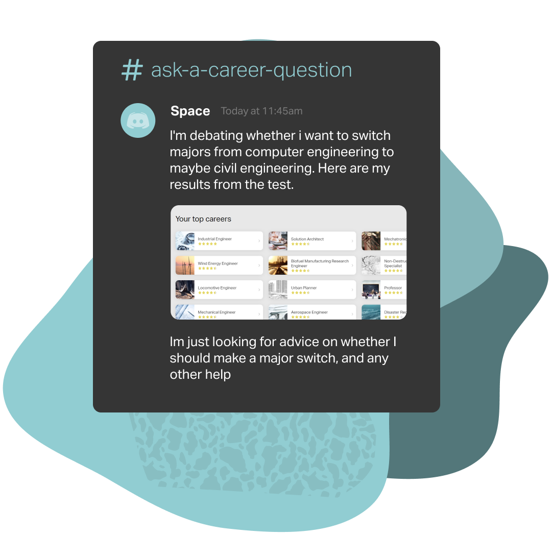 “I needed help figuring out how to use my degree. I used #ask-a-career-question and got great information.”