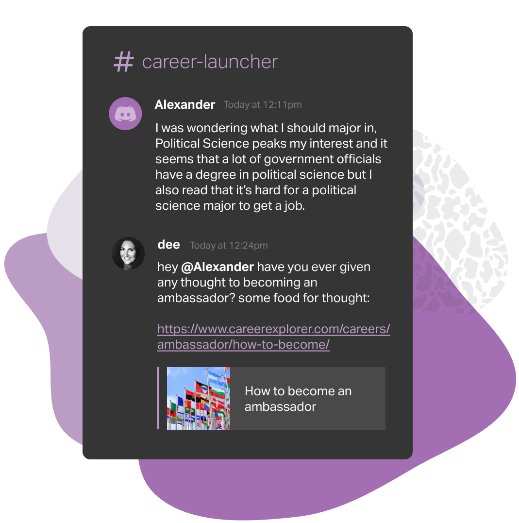 Tap into the #career-launcher channel to find people just like you to share tips and engage in conversation.